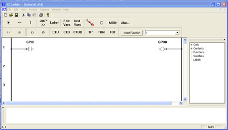 A ladder diagram is made of objects tied together by links. To place an object in a project, select the object from the tool bar or the tool bar’s drop down menu. Position the pointer where the object is to be inserted and left-click. This “places” the object. Repeat this step for other objects as required.