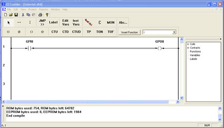 - Press the COMPILE button on the tool bar. If the ladder diagram has not been saved, EZ LADDER® will prompt you to save it before continuing (it must be saved before the ladder diagram can be compiled).