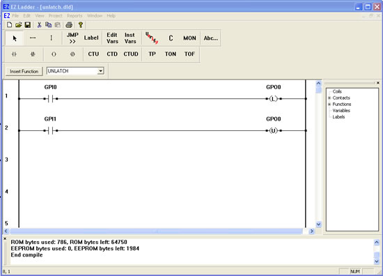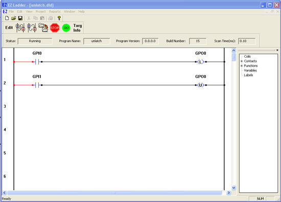 We will now use the UNLATCH coil in a ladder diagram. We will build upon the previous LATCH coil example.