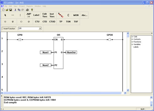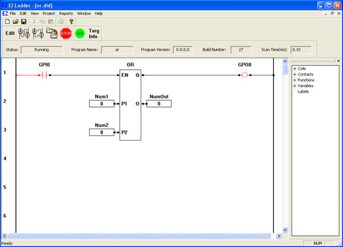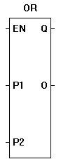 The OR functions provides a bitwise OR function of the P1 and P2 inputs. The enable (EN) must be true for the OR function to be enabled. The Q output is true when the OR function is enabled. |