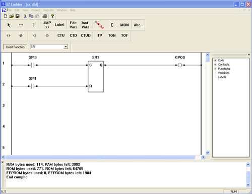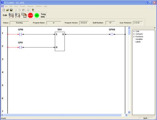 The SR function acts as a set dominant bistable. If the set input (S) is true, the output (Q) is true. A true on the reset (R) input sets the output (Q) to false only if the set (S) input is also false. |